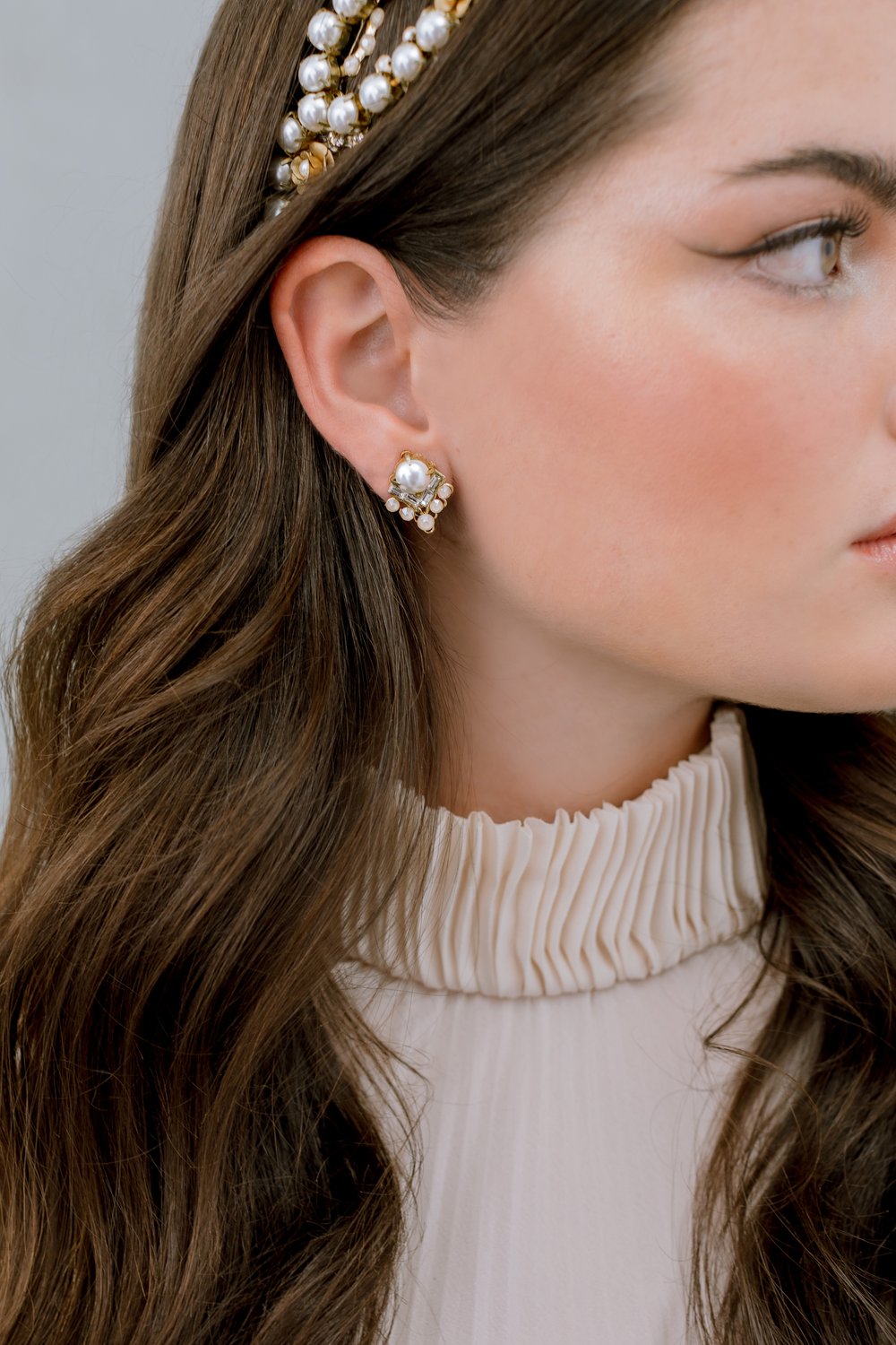 Our capucine clip-on earrings are quite chic and unique. They are luxuriously adorned with clear and ivory cream crystals, and white pearls.Store style: ME-CAPUCINE